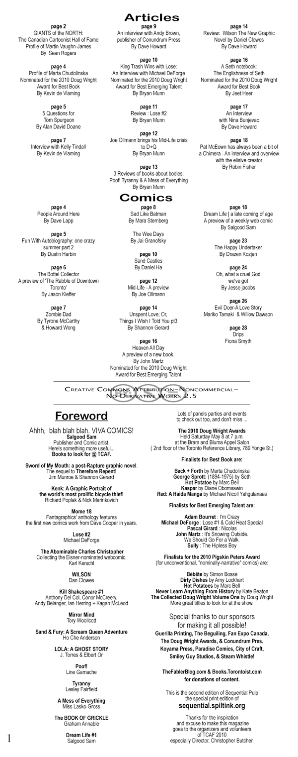 It’s just over a week till the kick off of the Toronto Comic Art’s Festival for 2010, and we here at Sequential are very proud to be taking part in some small way in the event by presenting our second print edition!