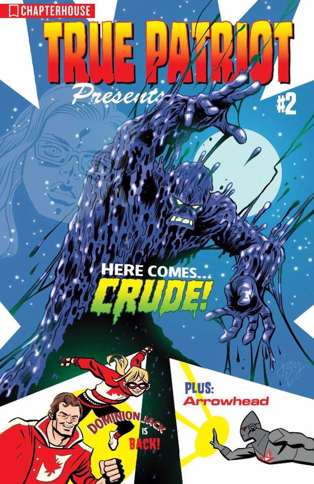 Item: Cartoonist Jay Stephens makes a villain of crude oil in this cover for the latest True Patriot superhero comics anthology...