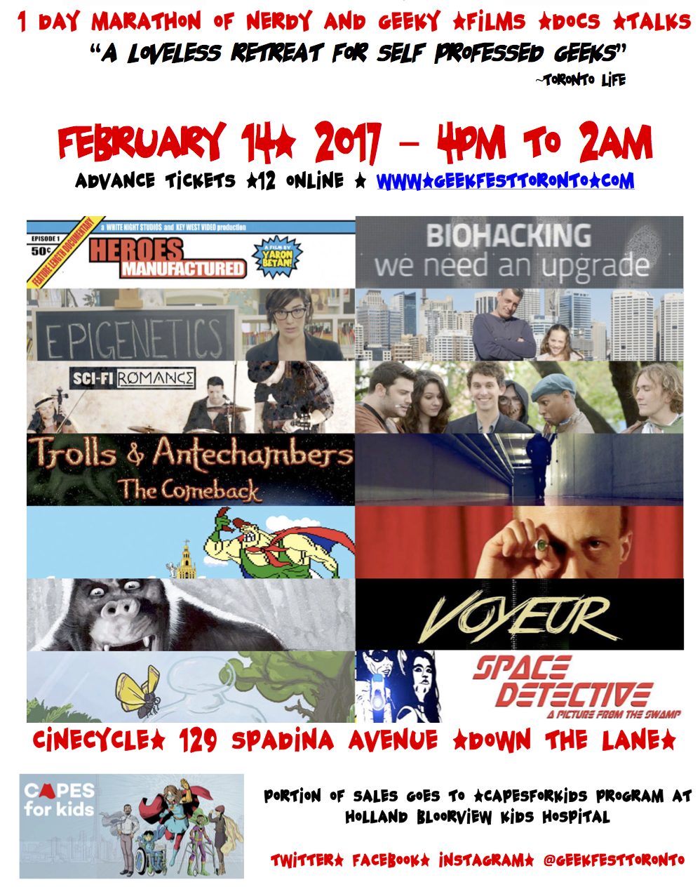 GeekFest Toronto runs Tuesday February 14th from 4pm to 2am at Cinecycle, 129 Spadina Avenue. You can purchase advance tickets online through geekfesttoronto.com.