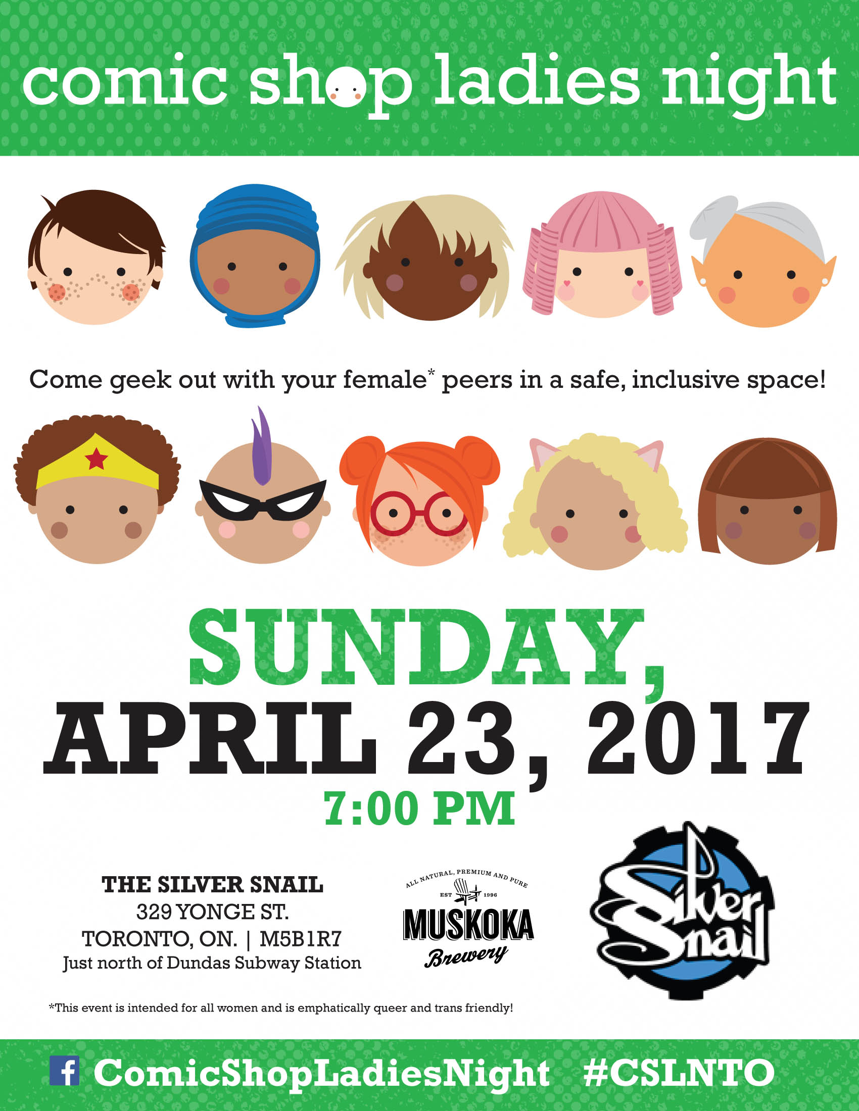 Ladies Night at The Silver Snail. Date: April 23, 2017. Time: 7pm. Location: 329 Yonge Street. Facebook event page.