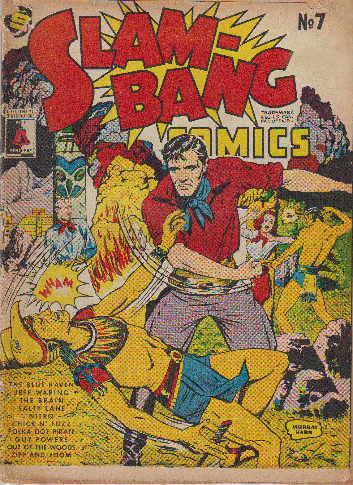 Item: Check out some classic old Canadian Comics on comicbookdaily. Slam-Bang Comics No. 7, with a cover date of May, 1946! One of the first post-WWII colour comic books from Canada, with work by Lou Skuce, Adrian Dingle, and more! Check out those Yellow Indians getting knocked out by the hero, and a suspiciously asian looking green bad guy in Dingle’s story. Some classic stereotyping in four colours! Lots of that in there, along with some nice comic art for the times. Good to remember for the good and the bad.
